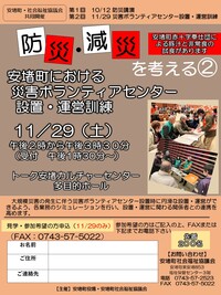 防災減災について考える②災害ボランティアセンター設置運営訓練は安堵町社会福祉協議会までお電話やFAX、申込用紙を持参してください。